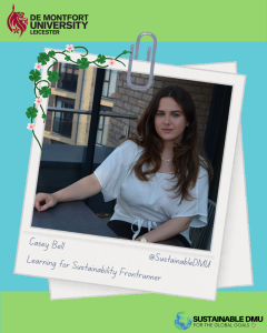Hi Everyone! My name is Casey and I’m the 25/26 Learning for Sustainability Frontrunner. I am very eager to get working on impactful projects alongside the sustainability team, fellow students and academics.